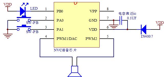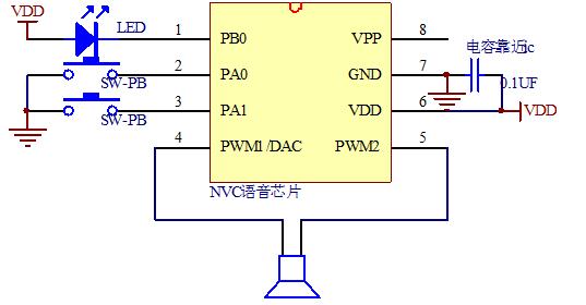 NV080C語音芯片電路參考圖: