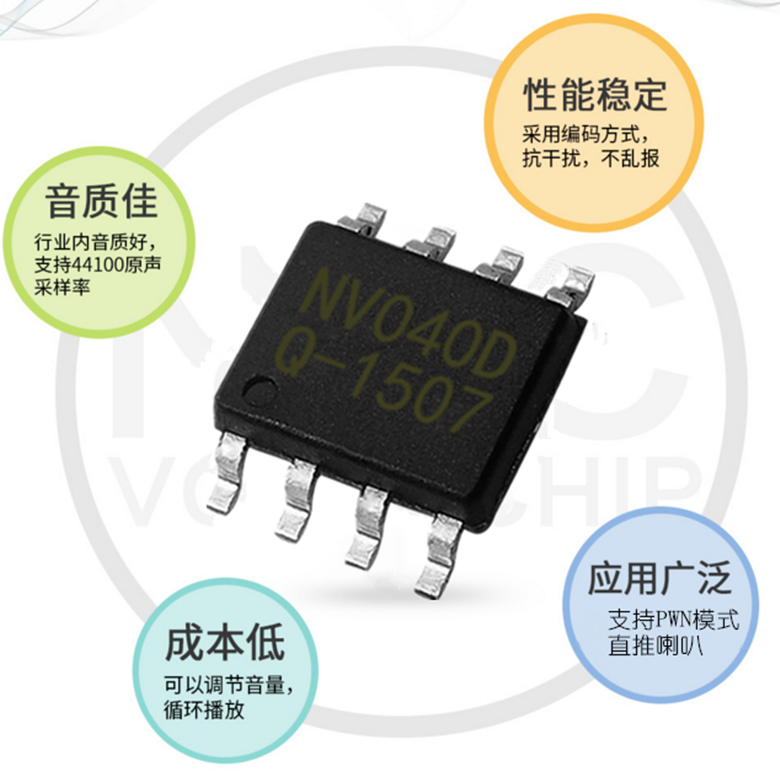 NVD系列語音是為8腳的OTP語音芯片,體積小,功耗低,價(jià)格便宜,音質(zhì)清晰明朗,外圍電路簡單,支持PWM輸出,性價(jià)比高語音播放芯片。...