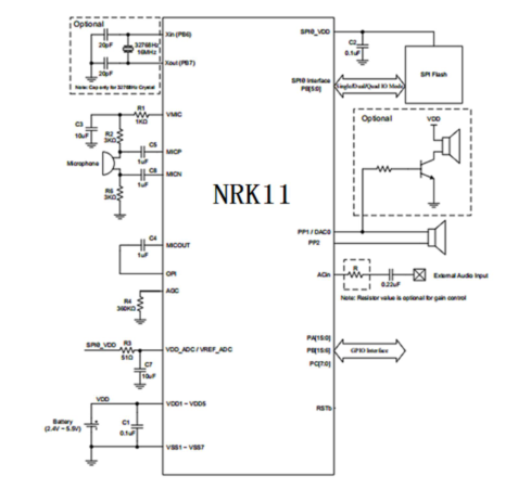 &bull; 內(nèi)置MIC 2級偏壓放大電路,以及自置AGC增益控制,以及率噪電路。
